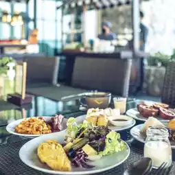 On top of the lobby, there is a bar with many specialty drinks, luxurious interior decoration, served with a beautiful view.