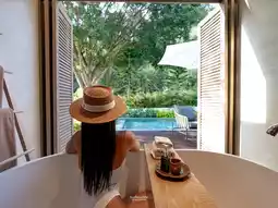 There are only 23 rooms in total. Of course, it is quite quiet and not chaotic. The room we stayed in was a 𝐏𝐨𝐨𝐥 𝐕𝐢𝐥𝐥𝐚 room. All mini bars were free. The room was very spacious and well-proportioned. There was a living room, bedroom, bathroom, bathtub, and private pool. The 𝐀𝐦𝐞𝐧𝐢𝐭𝐲 brand 𝐋𝐨𝐜𝐜𝐢𝐭𝐚𝐧𝐞 was very good. There was nothing to complain about in this room. For breakfast, we ordered a free 𝐅𝐥𝐨𝐚𝐭𝐢𝐧𝐠 𝐛𝐫𝐞𝐚𝐤𝐟𝐚𝐬𝐭 for free. Or you can order a menu by the sea.