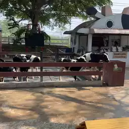We had the opportunity to visit there and eat food that is produced by the farm. There are many activities to join here, such as feeding small animals such as pigs, goats, sheep, rabbits, milking cows, and cowboy shows or dogs herding sheep (entrance fees and other services can be checked in advance on the page or website). We can drive inside to see the inside or choose to ride the tram that the farm provides. There are many different flavors of ice cream, drinks, and souvenirs to choose from.