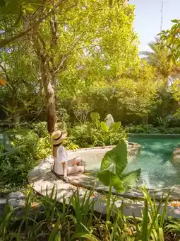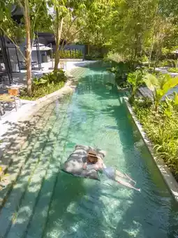 Is a stream-like swimming pool, lots of photo spots