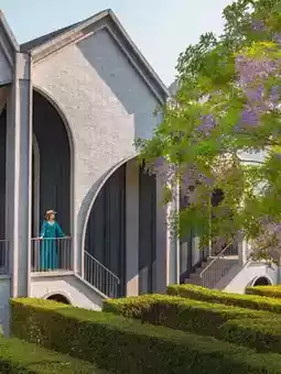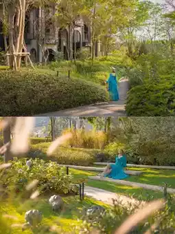 You can take photos in the beautiful garden in front of the hotel for free.