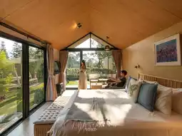 The house we stayed in was called 𝐃𝐞𝐥𝐮𝐱𝐞 𝐓𝐢𝐧𝐲 𝐂𝐚𝐛𝐢𝐧, a Nordic-style accommodation full of trees and various species of flowers, comes with privacy for us to fully relax. This house can accommodate 2-3 people, including 2 meals. Breakfast is served in a cute bento box set. Dinner is a delicious barbecue pork that goes well with the atmosphere.