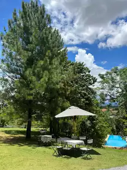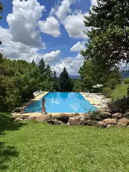 It is a place with a great view, mountain view and a swimming pool below.🌿💐