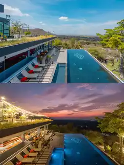 A swimming pool with a magnificent view, watching the sunset is so romantic