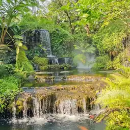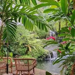 Walking around the beautiful garden and waterfalls, you can walk around the resort. Another thing I like is that they are aware of the sustainable use of resources, using solar cells to grow vegetables and raise laying hens to use in the restaurant.