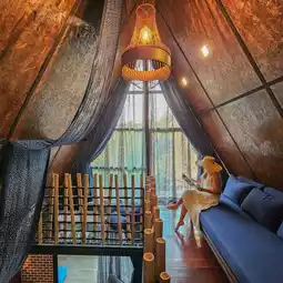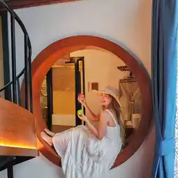 These are A-frame cottages in the style of European countryside houses. The interior is spacious and airy, perfect for relaxing. Go soak in a large bathtub on the balcony.