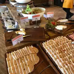 The accommodation includes breakfast. The breakfast is varied and delicious. If you come in the morning, there will be a lot of people eating.