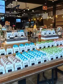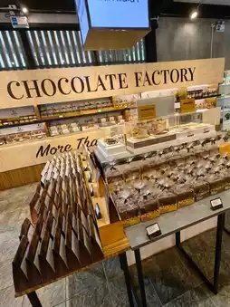 Chocolate Factory Khao Yai is located on the main road, with other restaurants and shops next to it, which is very convenient. There are two floors in total. The underground floor has a make-to-order workshop and a snack cafe. Of course you can buy chocolate products! The upstairs floor is the restaurant, which offers main courses, as well as a large selection of chocolate drinks and desserts. It tastes good and is worth a try. There are products to try, and you can also buy some chocolate as souvenirs, because some of the products are made from local high mountain chocolate beans.