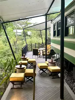🧊 And it turned out great. My personal favorite in the resort, I feel that it is beautiful and unique that I must recommend to come is “Papillon Bar”, a carriage hidden in Forest & Lake. The atmosphere inside is very luxuriously decorated. The carriage next to it is the French restaurant “Poirot”.