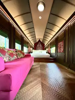🚃 "Heritage Railcar 1 Bedroom Villa" will have an area of 109 sq.m. The designer of this villa room ... designed it to be inside a full antique train car ...