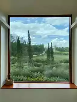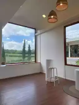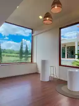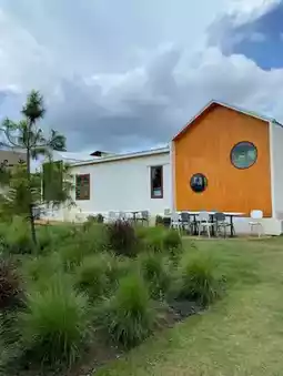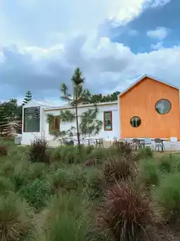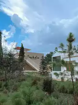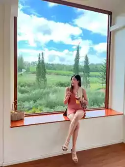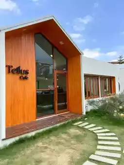 Today, we will take you to Tellus cafe, located in Pak Chong, Khao Yai district. The shop is designed as a small house in white and wood colors, surrounded by pine trees and small bushes, contrasting with the sky and bright clouds, creating a very comfortable atmosphere. The interior is decorated with large glass panels, allowing a full view of the outside, like looking at pictures hanging on the wall. You can take pictures both inside and outside the shop, each beautiful in its own way.