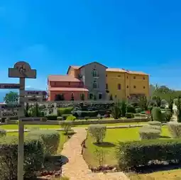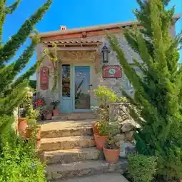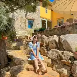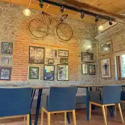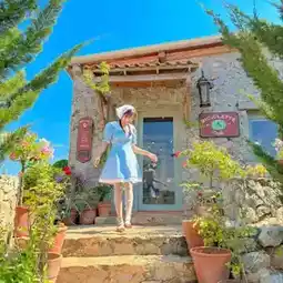 A cafe with a nice atmosphere. The building is made of stone. There are trees and flowers around the shop. Inside is a cool air-conditioned area. Outside are outdoor tables to enjoy the cool breeze. They serve food, bakery, and many drinks. Come sit and take beautiful photos.