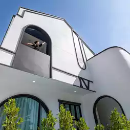 A luxuriously designed house, soft and gentle tones throughout the house, soft bed, comfortable to sleep in.