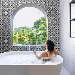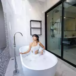 I like the design of their swimming pool the most. There is a cool photo corner with fancy floats to play with. 🛟 And the highlight is the bathtub for soaking in the water to store content.