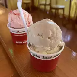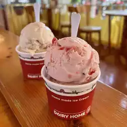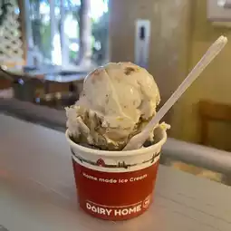The fresh milk comes in a variety of flavors. Recommended are Bed Time Milk and Butterscotch 🍨. Ice cream is available in small/large packs to take home.