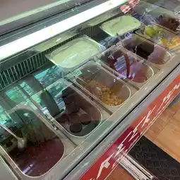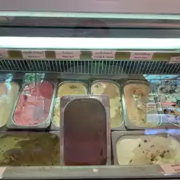 The ice cream display is prominent, offering a wide variety of flavors. After tasting, it's hard to decide what to order because each flavor is uniquely delicious. If you're staying for several days, you can come and enjoy it every day.