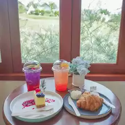 A Khao Yai cafe with beautiful photos. The shop is decorated in brown and cream tones, contrasting with the garden and pine trees, making it look European. The light in the shop is very beautiful and there are many photo spots. There are many drinks and desserts to choose from.