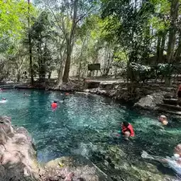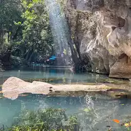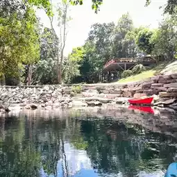A natural spring where you can swim, there are kayaks for paddling (with a fee)