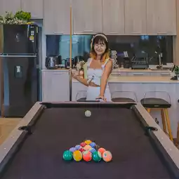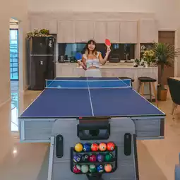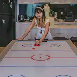 Wik and her uncle like that it has a complete pool table, ping pong, hockey.