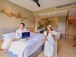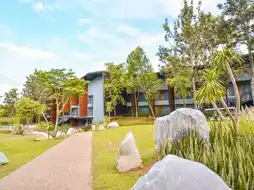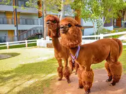 #Accommodation with a beautiful swimming pool #100 ways to travel dusitD2 khaoyai, a luxury resort in Khao Yai, Pak Chong District, Nakhon Ratchasima Province, a view of the beautiful swimming pool amidst nature like being abroad, coming to feed the cute alpacas, modern style rooms, beautiful and luxurious, great view, complete facilities, picnic activities, climbing on simulated cloth and dinner, Thai-Italian restaurant, full buffet breakfast, delicious, many menus #travel #accommodation with a good atmosphere #Khao Yai