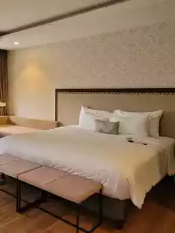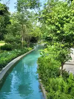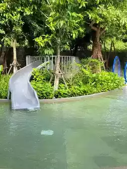 Another beautiful hotel that we are impressed with and would like to recommend is Labaris Hotel Khao Yai. The hotel is shaped like a fairytale castle, beautiful and neat from every angle. If you look from above, each villa is lined up like a maze. Each room is very private. The room has complete amenities. The bed is very soft. But what we like the most is the bathroom, which is not very large but is decorated with clear glass, making it look spacious, wide and comfortable. Around the hotel, there are gardens and molded fairytale animals. The swimming pool is beautiful. At the end of the hotel is a natural stream. It really has every atmosphere. It is suitable for people who love comfort but still want to be with nature.