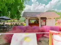 When Min went, the flowers were not blooming much. The shop gave free entry. There were very few people, so we bought some products. The shop has fresh strawberries, strawberry milk, daifuku, cakes, and drinks.