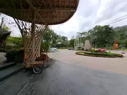 The hotel is lush with various trees and flowers 🌺. There are walking paths to get some exercise and a small pool to cool off, perfect for autumn.