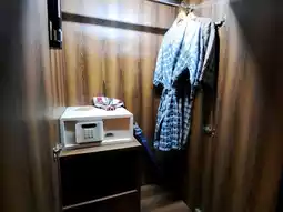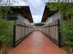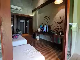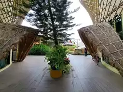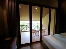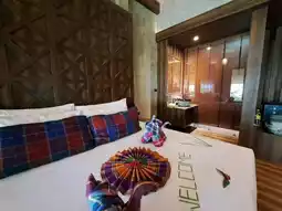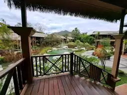 We stayed in a deluxe room, which is decorated according to the theme. The room is fully equipped with amenities. The bathroom and toilet are separate, with the sink outside. There is an outdoor balcony with a thatched roof where you can enjoy the morning air. The bed is very comfortable.
