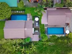 #tripflying to Asia A large pool villa with a beautiful private pool, Best Way Resort, Khao Yai, decorated in an American style, can accommodate 10 people, has cooking equipment, a kitchen, a living room, can sing karaoke, has a deluxe room in the central pool area, breakfast is a buffet with a lot of menus and is close to many other tourist attractions. Come as a family comfortably #Good atmosphere accommodation #travel #Khao Yai