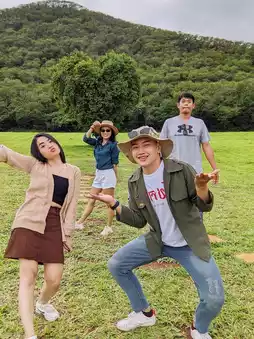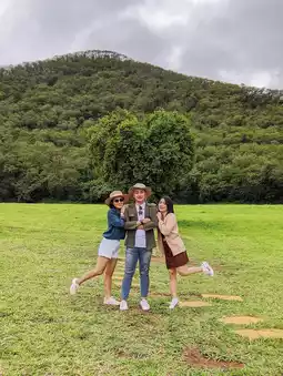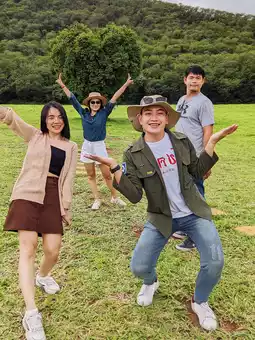 It is a popular tourist spot in Khao Yai. The highlight is the pair of tamarind trees that grow together and have branches that split into two sides, making them look like a heart shape. They stand out in the middle of the green fields at Thong Somboon Club. Tourists like to come here to take pictures, especially couples or groups of friends. The atmosphere inside the farm is shady and open with quite a lot of space. When I came, it was the rainy season, so the sky wasn't that beautiful. I recommend coming in the morning or evening to get beautiful light and a warm, romantic feel. To take a picture of the heart-shaped tree, you have to take the farm's tram because it's quite far away. The entrance fee + tram is 60 baht/person.