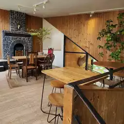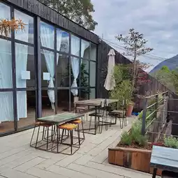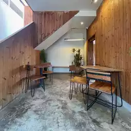 Khao Yai cafe decorated in a modern cottage style, perfectly blended. The area is divided into 3 zones: a cafe, a restaurant, an organic product warehouse, and a small resort. The cafe has many corners, 2 floors, and an atmosphere that feels like a wooden house in the middle of a foreign pine forest. There are drinks, snacks, and brunch menus. There are many photo spots.