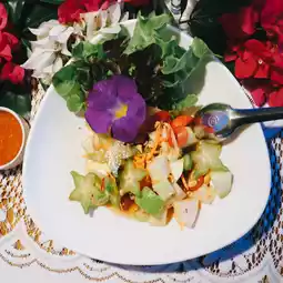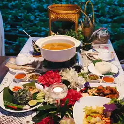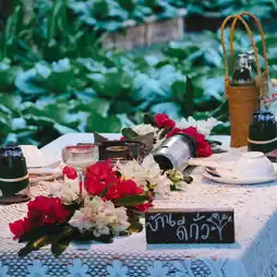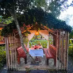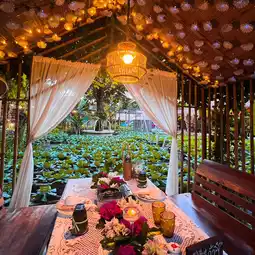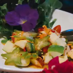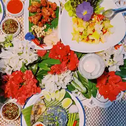 A lovely restaurant that is perfect for a relaxing break. It is a restaurant located inside the Baan Nok Khok Na Khao Yai hotel. It has a great atmosphere, allowing you to experience nature and agricultural lifestyles. The menu is Thai food. The dishes are decorated with vegetables or flowers. There are many seating areas to choose from, so you can choose your favorite. Every menu is delicious, including shabu, fruit salad, mackerel rice, and fried chicken tendons. #tripfreeaccommodation #BaanNokKhokNaKhaoYai