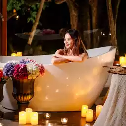 Each house has the same interior decorations. There is a bathtub inside the room in every house. But the difference is at the back of the villa, which has a different layout and area, along with another bathtub at the back of every villa. I must say that you can take great photos and get a lot of content for sure. Glamour lovers must not miss it.