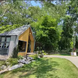 This shop is full of big trees, shady, with the sound of natural waterfalls for you to fully enjoy. I guarantee that anyone who comes to experience it will feel warm and feel the ozone to the fullest. Upon entering, there is a dance floor by the river. The shop may not be very big. The interior uses warm brown and white tones. The decorations are cute and you can sit and take pictures from many angles. But when you open the door to the back, it's like you're in a park. #cafe review