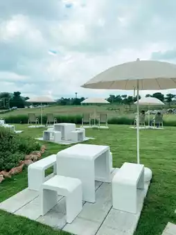 ✨The cafe is located amidst nature, with beautiful and modern decorations. There are indoor and outdoor seating areas.