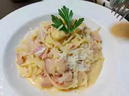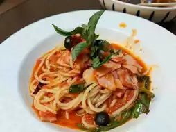 Seeing the name of the restaurant as a guarantee, I had to try it. The spaghetti is soft and chewy. Tomato-based sauce with pancetta and olives, really good taste, no disappointment.