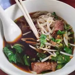 Tiew Ta To, a noodle shop in the garden style of relatives in Khao Yai. There are many menus, stewed pork noodles, bouncy pork, chicken legs, including Panang curry rice, green curry rice, and a cafe section, Kafae Ta To, located on Road 3052, on the way to Tuscany, with a parking lot in front of the shop