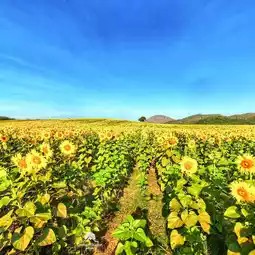 Sunflowers bloom all over the hills, as far as the eye can see. No matter where you look, you will see bright yellow. It is a large sunflower field covering an area of more than 500 rai.