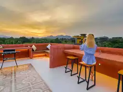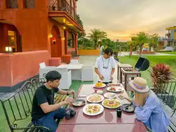 The Air @ KhaoYai is a luxurious Moroccan-style vacation home that stands out from other accommodations in Khao Yai. It can accommodate 8-13 people, making it perfect for those looking for a place in Khao Yai where they can have a BBQ. They offer a set for wine and BBQ parties on the rooftop, where you can relax, hang out, and enjoy the sunset. There's also an outdoor swimming pool and a karaoke set for those who want to have a fun singing party, ensuring a fully enjoyable stay.