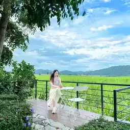 There are many seats outside the shop. Next to the shop is a rice field and a mountain view decorated with green gardens, alternating with flowers. There are also fountains. The atmosphere is very shady, like walking in a backyard. There are many photo spots. Anyone who stops by Yaowa Yai, don't miss this cafe.