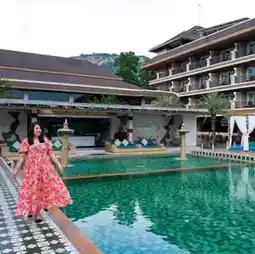 มุมชิลๆของโรงแรมก็ต้องยกให้สระว่ายน้ำที่ตั้งอยู่กลางโรงแรมเลย มีมุมพักผ่อนรอบสระให้ถ่ายรูปสวยๆไ้ด้ด้วย