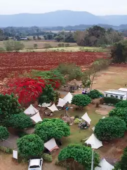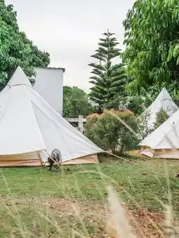 #trip takes you to fly to China, camping-style accommodation Somewhere with Someone - Khaoyai Glamping is a tent with a good atmosphere and mountain views, located in Pak Chong District, Nakhon Ratchasima Province. There is equipment for cooking, a great feel, shared bathrooms, good facilities. In the morning, there is a set of rice porridge and fried eggs. I must say that it is very delicious. Come and you will not be disappointed. You can also bring your dog here. You can bring your dog to travel. #Khao Yai #Good atmosphere accommodation #travel