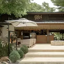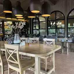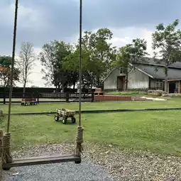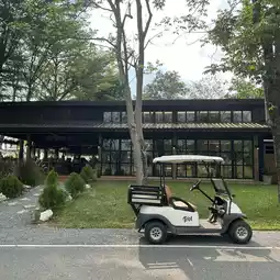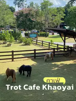 Tha Trot Cafe KHAOYAi is located in RanCho Charnvee Resost Hotel, which has a natural atmosphere. There are many activities, animals such as ducks, miniature horses, and horses to ride. There is also an electric train to choose from to drive and see the atmosphere of the shop. The shop is very spacious. There is a lot of space. The atmosphere is good. I recommend coming in the evening to get some shade. There are seats both in the air-conditioned room and outside. Order and pay right away. What I like is the shop's desserts. They look very delicious. There are many drinks to choose from, both desserts and drinks.