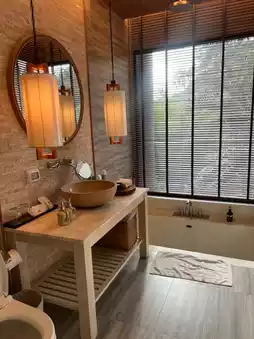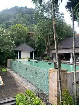 I would say this is the best hotel. The air is fresh and cool, surrounded by nature and green mountains. It is quiet. After working hard, come and relax your mind and body, and recharge here. I am very impressed. The hotel atmosphere is very good. The room is beautiful and the bed is big. I like every corner of the hotel. It is very cool. The view is beautiful and the scenery is very beautiful. Enjoy the atmosphere with nature. It is a beautiful accommodation and near Bangkok. Just a short drive and you will arrive. Come and enjoy the atmosphere with great air. I highly recommend it. I have been here many times and have never been disappointed.