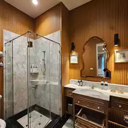 Accommodation is spacious and has a good atmosphere. Tra Ranshow Charnvee Resort and Country Club. The rooms are luxurious and comfortable to sleep in. It's Louis style. There is a large swimming pool with a bar by the pool. There is a pool for children. There is a big movie screen in the restaurant. The food is good. There are many. There are 2 restaurants: a restaurant and an Italian restaurant. Inside the hotel, there is a golf course. You can drive an electric car, an antique car, or ride a horse. The morning air is very good. There is a charging station for electric cars. The staff provides good service.