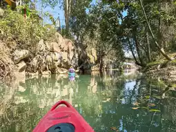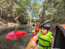 Anyone who has a plan to visit Khao Yai, I would like to invite you to try it. Relaxing rowing in the stream, clear and cool water, see big and small trees, very good atmosphere, very chill, very fun.
