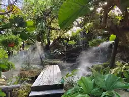 🌳The cafe will be an outdoor area, focusing on a natural atmosphere, with trees, rivers, and waterfalls.