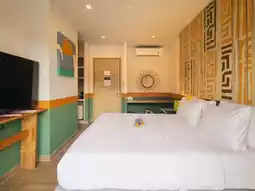 The atmosphere inside the hotel is shady, quiet and private. The rooms are decorated with unique characteristics. The room space is well-proportioned. There are complete facilities. The common area has an outdoor swimming pool, fitness center, playground, bicycles to ride around and there is also a vegetable plot that is grown by the owner to be used as ingredients in the restaurant here. The highlight is the giant lime tree, which I must say has very large fruits and the lime juice is very delicious.
