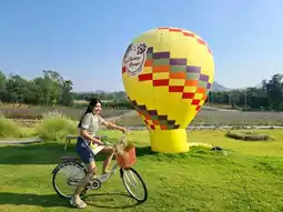 Suan Harn Sa Khao Yai Cafe is a cafe on the main road back from Korat. There are both air-conditioned rooms and outdoor areas. The back area is a flower garden. The area is wide. There are balloons decorated as a gimmick for taking beautiful photos.