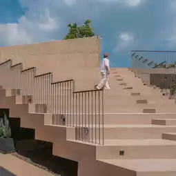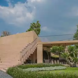 In terms of architectural elements Materials with textures and colors that blend with nature, such as earth and light pink, are used, as well as designs that allow nature to fully participate. Many openings in the building are designed to allow natural light to pass through, creating a harmonious connection between the architecture and the surrounding ecosystem.